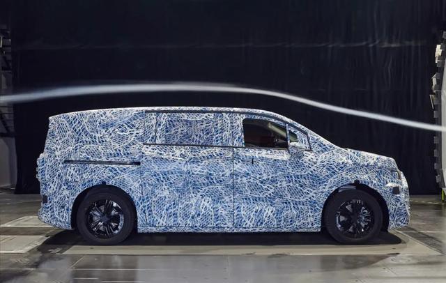 车身侧面,采用方正流畅的轮廓,短前悬设计最大化拓展车内空间,配备24英寸五辐封闭式轮毂与隐藏式门把手,有效降低风阻系数,B柱设有迎宾显示功能,用户可自定义字体或图案,配合自动开启的电动侧滑门与发光伸缩踏板,提升上下车的尊贵感。车尾采用环绕式尾灯,与前脸设计呼应,450个三维发光百叶框围包裹后窗,兼具照明与装饰功能,整体风格大气稳重,适配商务与家用双重场景。